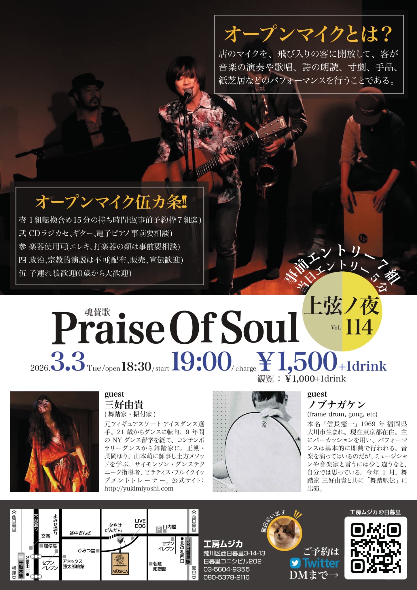 3月3日火曜日 日暮里の工房ムジカにて、オープンマイクのイベントのゲストでパーカッションのノブナガケンさんと出演する事になりました〜!